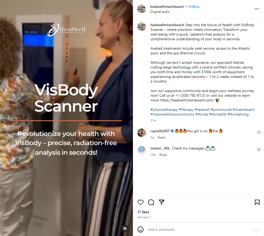 Healwells omfavnelse av visbody-s 30 har blitt delt entusiastisk på sine sosiale medier. I ett Instagram -innlegg, De fremhevet skannerens evne til å levere raskt, Strålingsfrie analyser, Å gi pasienter en omfattende forståelse av kroppens tilstand i løpet av sekunder. Et annet innlegg fokuserte på morsdagen Special, Tilbyr en komplett kroppsskanning sammenkoblet med en spa -dag, illustrerer skanners rolle i å styrke pasientopplevelsen og omsorgen.