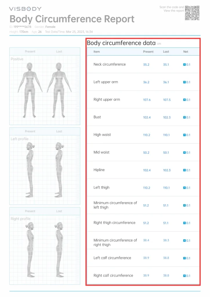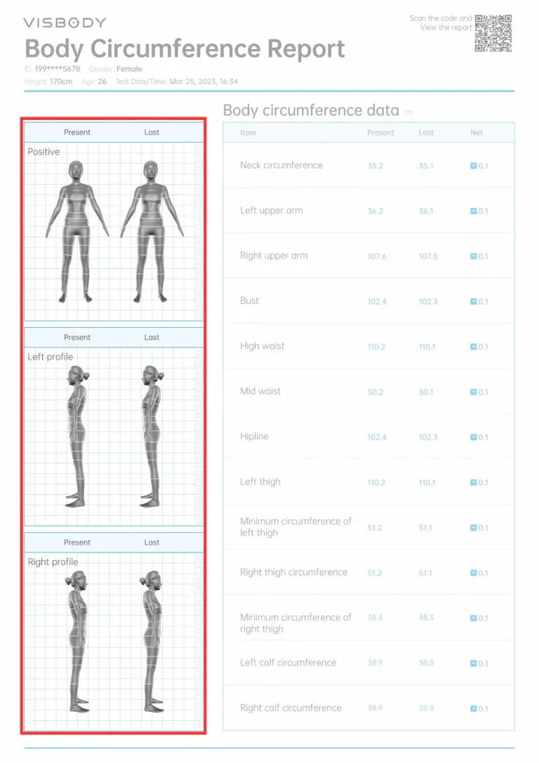 Vücudunuzun detaylı analizinin yanı sıra, Visbody ayrıca daha sonra vücudunuzdaki değişiklikleri karşılaştırmak için kullanılabilecek verilerinizi saklama özelliğine de sahiptir..