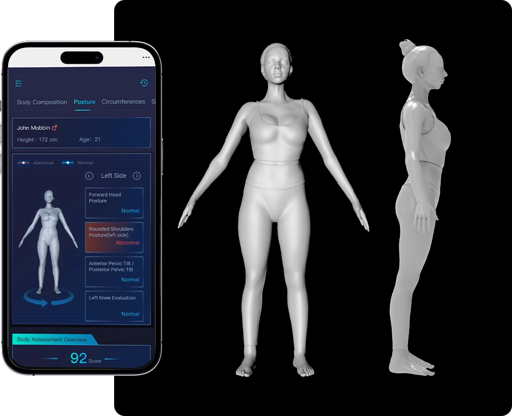 - 9-Point Static Posture Assessment: Use advanced 3D skeletal detection to reveal postural issues.