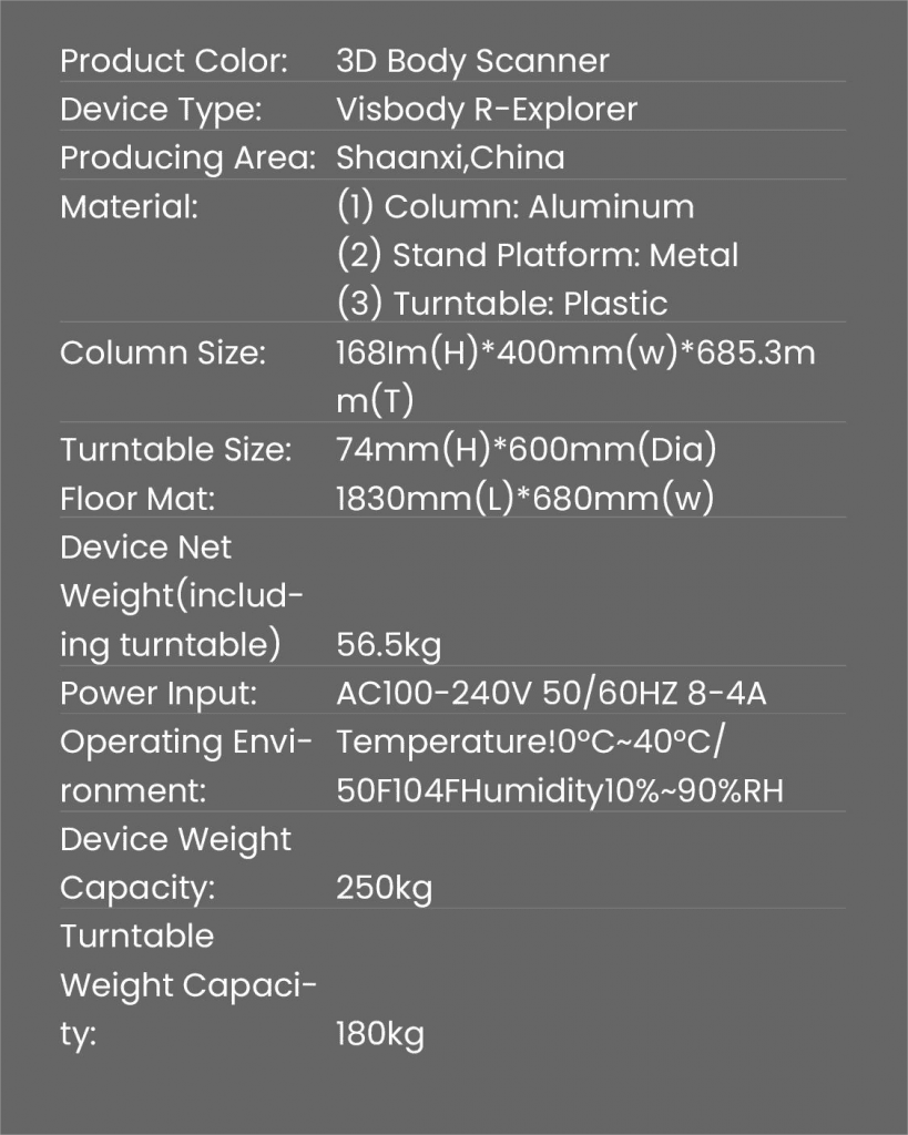 Experience 9mm-level accuracy in body circumference measurements and obtain 9 body shape & posture results with our 3D Body Composition Scanner. The perfect tool for achieving fitness & body beauty goals.
